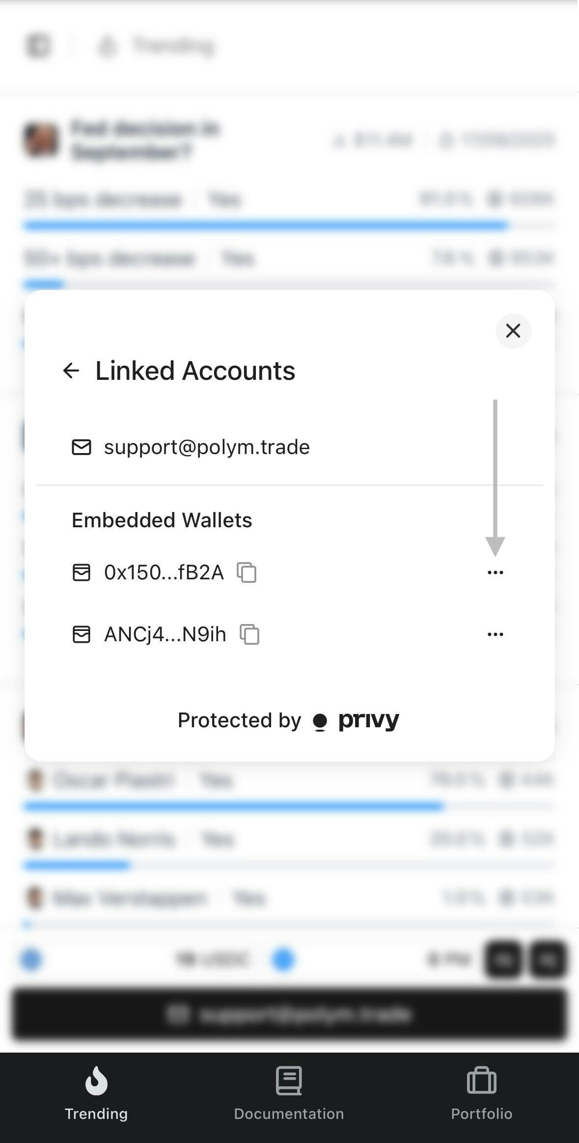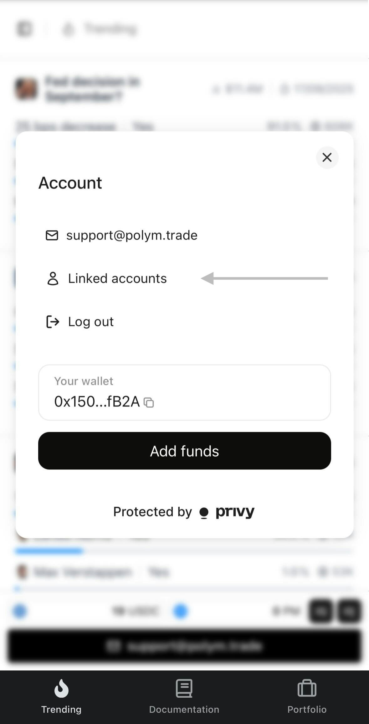 Click Linked accounts to view all embedded wallets connected to your profile.